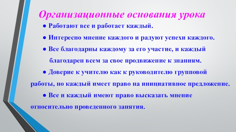 ● Доверие к учителю как к руководителю групповой работы, но каждый имеет право на инициативное предложение.