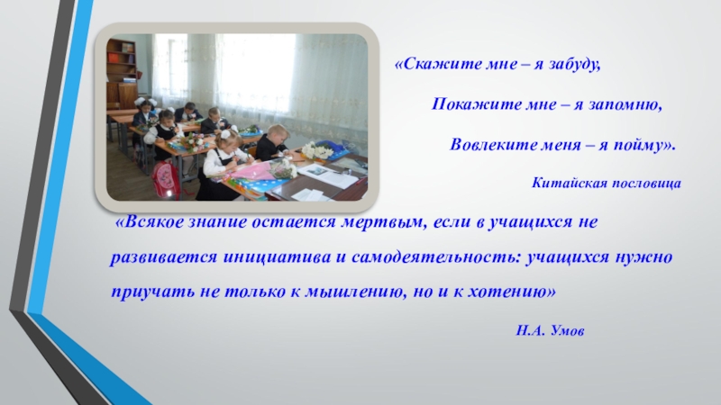 «Всякое знание остается мертвым, если в учащихся не развивается инициатива и самодеятельность: учащихся нужно приучать не только к мышлению, но и к хотению»