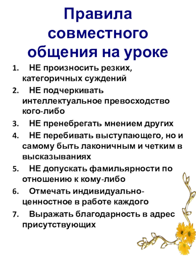 Слайд 7Правила совместного общения на уроке
