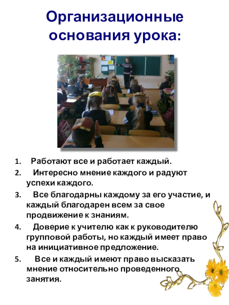 Слайд 6Система организационных правил на уроке