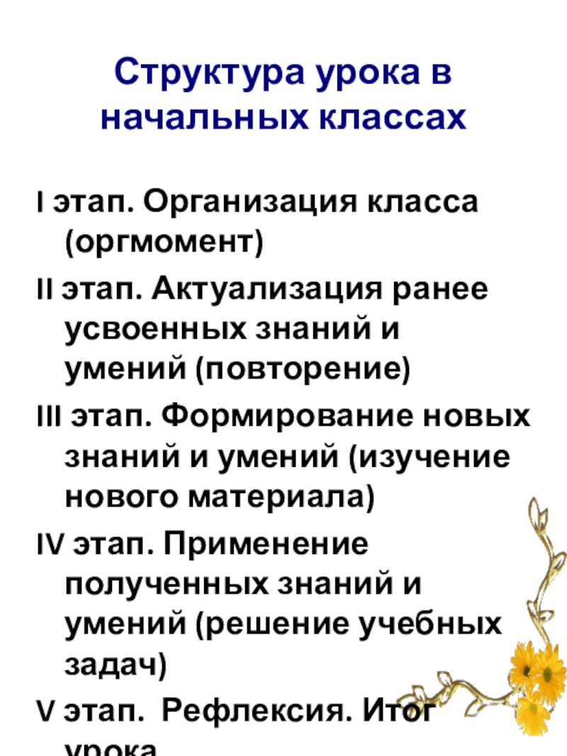 Слайд 12Структура урока в начальных классах