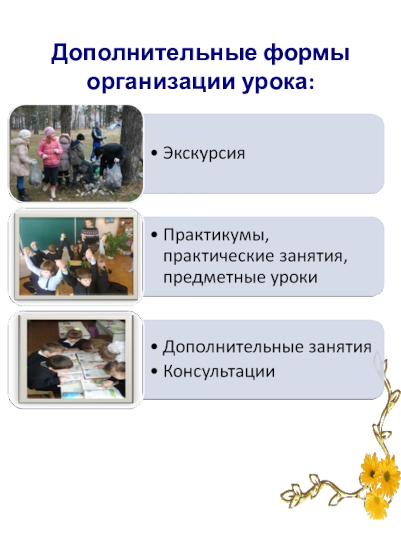 Слайд 18Дополнительные формы организации урока: