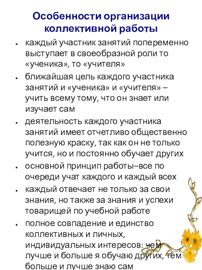 Слайд 14Особенности организации коллективной работы