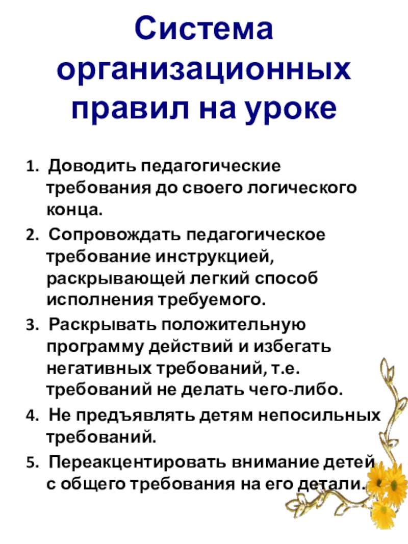 1. Доводить педагогические требования до своего логического