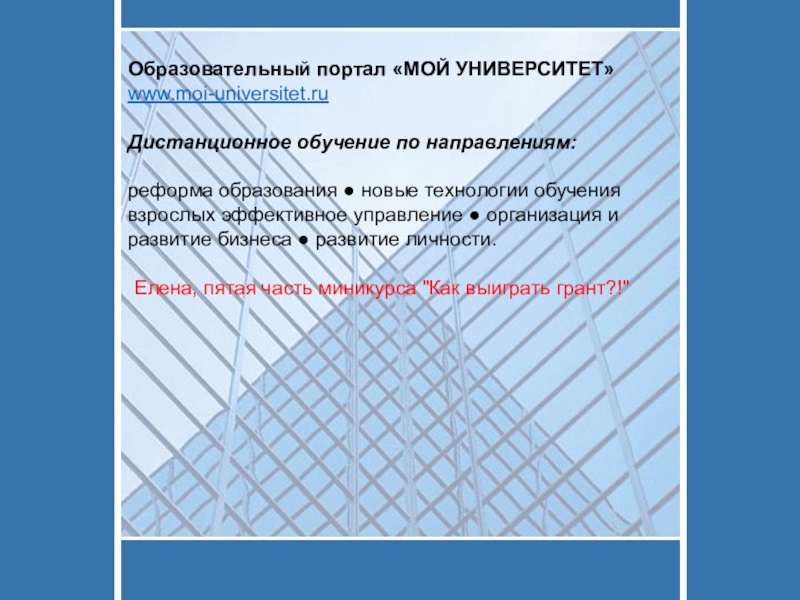 Елена, пятая часть миникурса "Как выиграть грант?!"