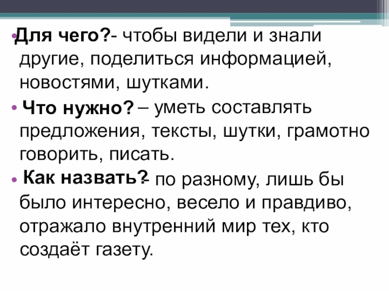 Это сайт презентаций, где можно хранить и обмениваться своими презентациями, докладами, проектами, шаблонами в формате PowerPoint с другими пользователями. Мы помогаем школьникам, студентам, учителям, преподавателям хранить и обмениваться учебными материалами.
