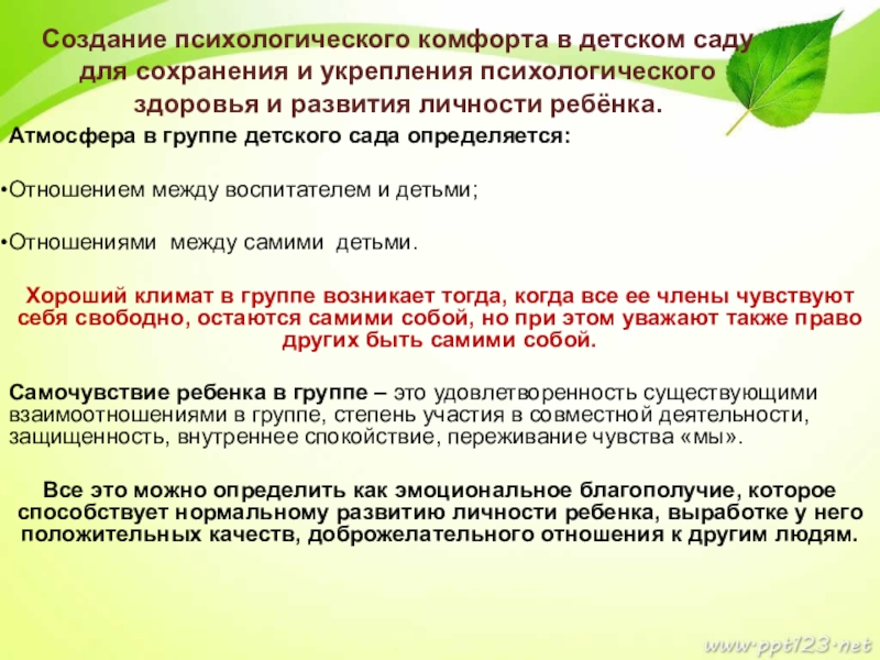 Все это можно определить как эмоциональное благополучие, которое способствует нормальному развитию личности ребенка, выработке у него положительных качеств, доброжелательного отношения к другим людям.