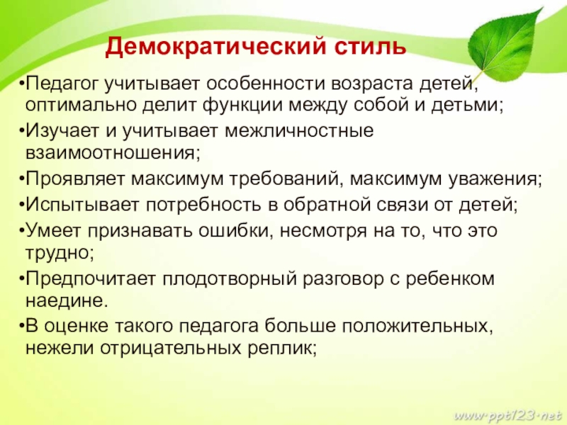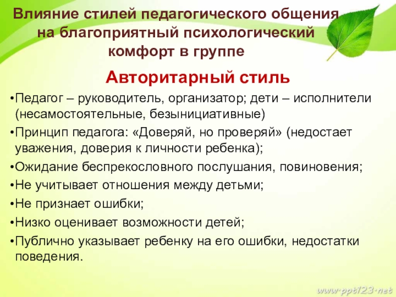 Влияние стилей педагогического общения на благоприятный психологический комфорт в группе