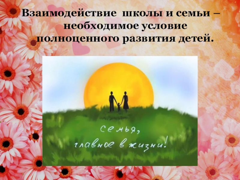 Слайд 18Взаимодействие школы и семьи – необходимое условие полноценного развития детей.