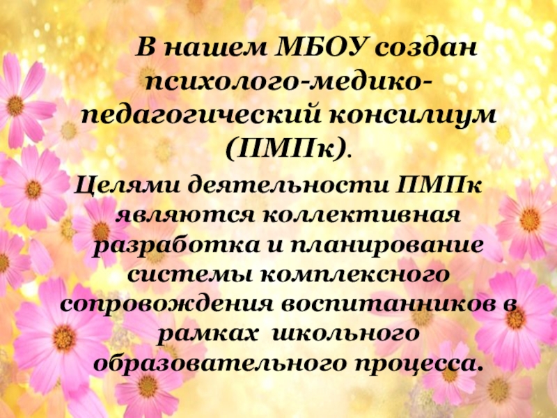 Слайд 7 В нашем МБОУ создан психолого-медико-педагогический консилиум (ПМПк).