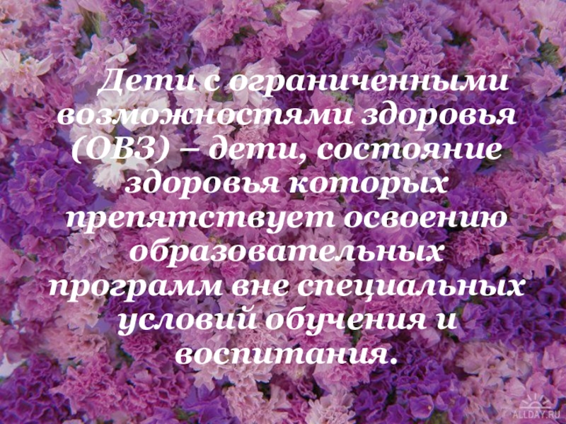 Слайд 4 Дети с ограниченными возможностями здоровья (ОВЗ) – дети, состояние здоровья которых