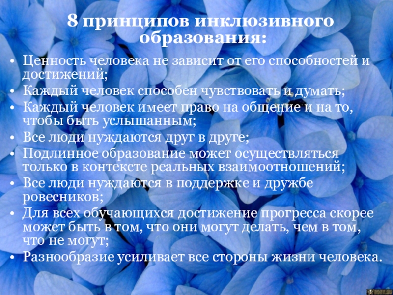 подразумевает доступность образования для всех, в плане приспособления к различным нуждам всех детей, что обеспечивает доступ к образованию для детей с особыми потребностями.