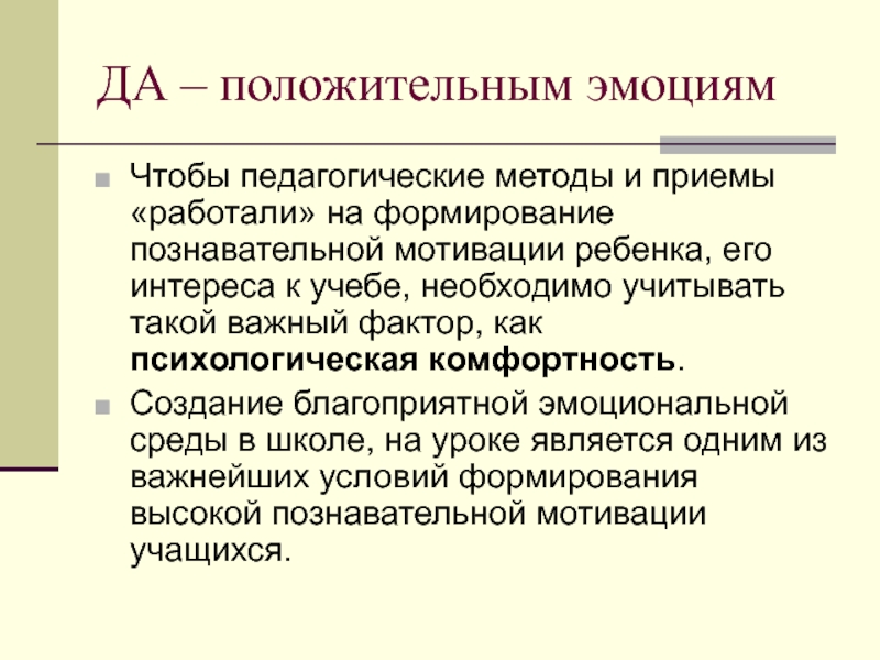 познавательной мотивации ребенка, его интереса к учебе, необходимо учитывать такой важный фактор, как психологическая комфортность.