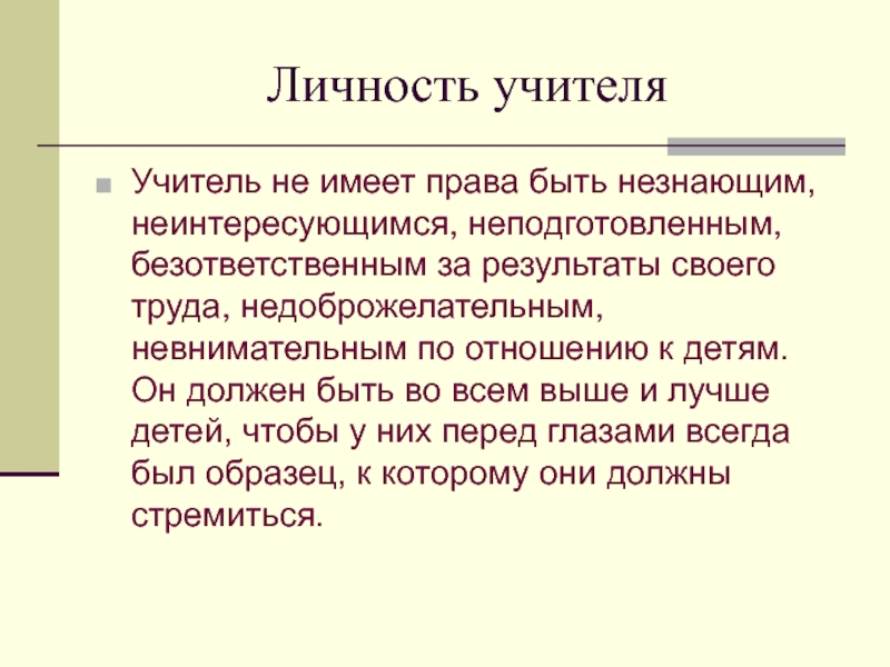 Учитель не имеет права быть незнающим, неинтересующимся, неподготовленным, безответственным за