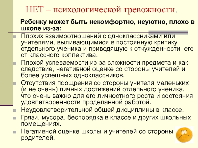 Плохих взаимоотношений с одноклассниками или учителями, выливающимися в постоянную критику отдельного ученика и приводящую к отчужденности его от классного коллектива.