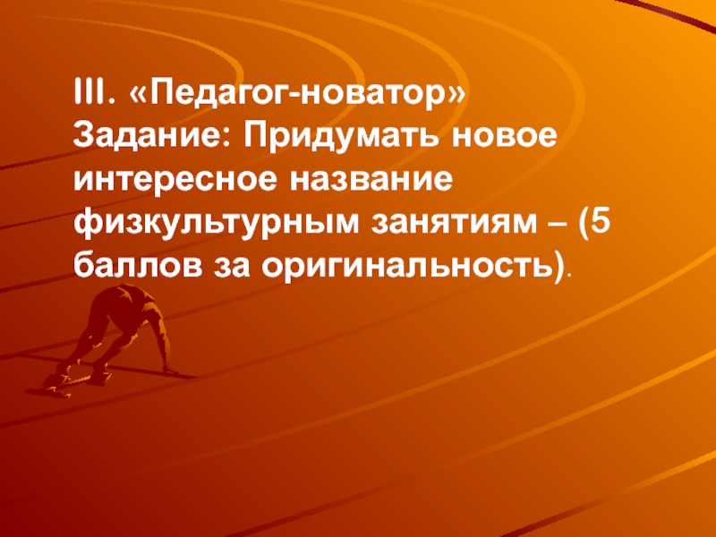 Задание: Придумать новое интересное название физкультурным занятиям – (5 баллов