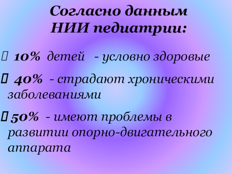 50% - имеют проблемы в развитии опорно-двигательного аппарата