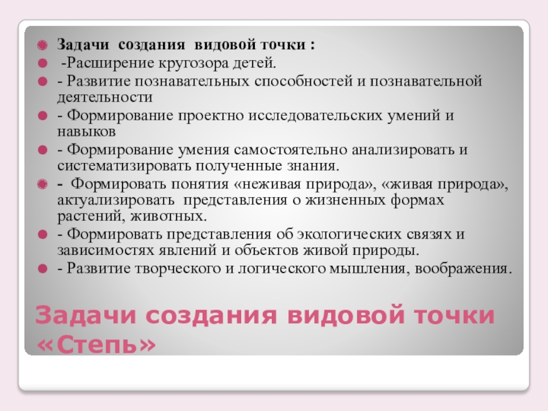 Слайд 7Задачи создания видовой точки «Степь»