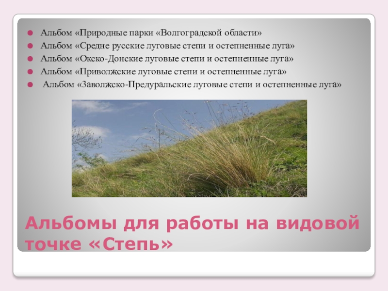 Слайд 13Альбомы для работы на видовой точке «Степь»