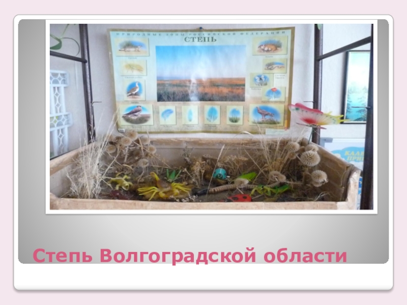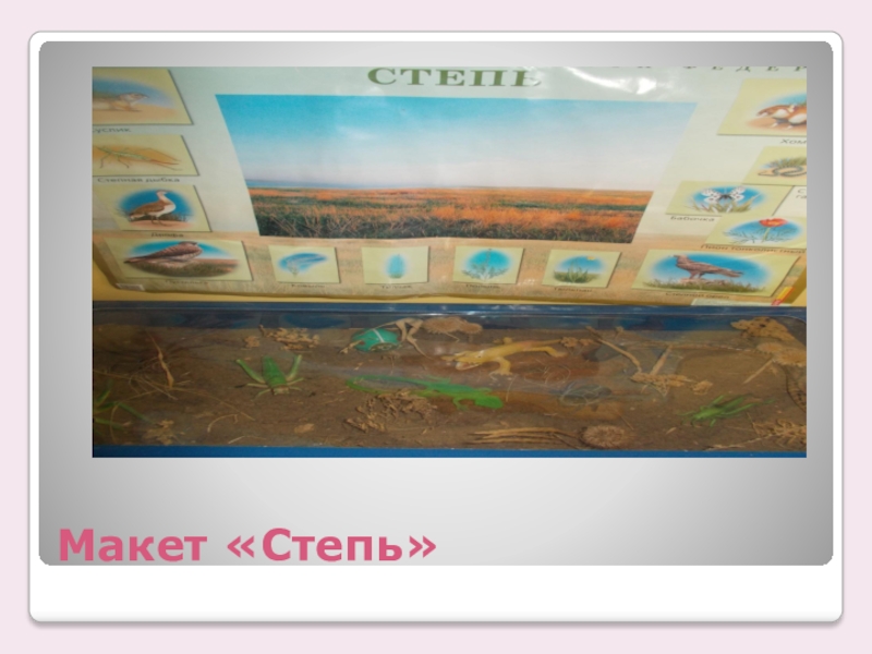 Слайд 8Представители флоры и фауны представленные в макете. «Степь»