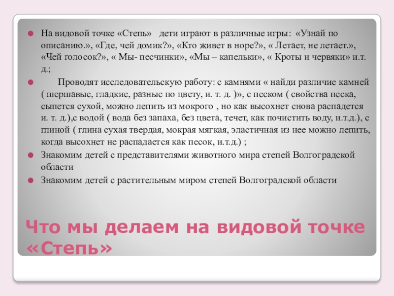 Слайд 10Что мы делаем на видовой точке «Степь»
