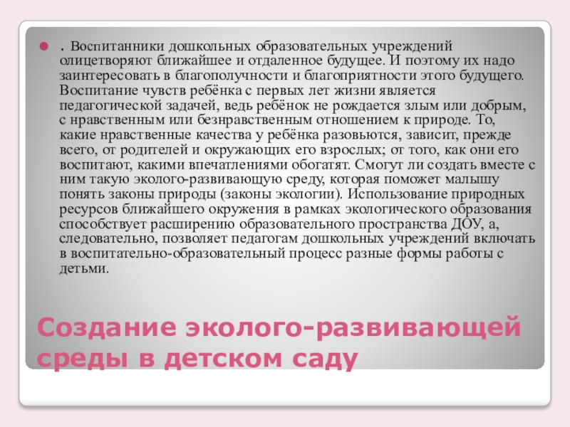 Слайд 2Создание эколого-развивающей среды в детском саду