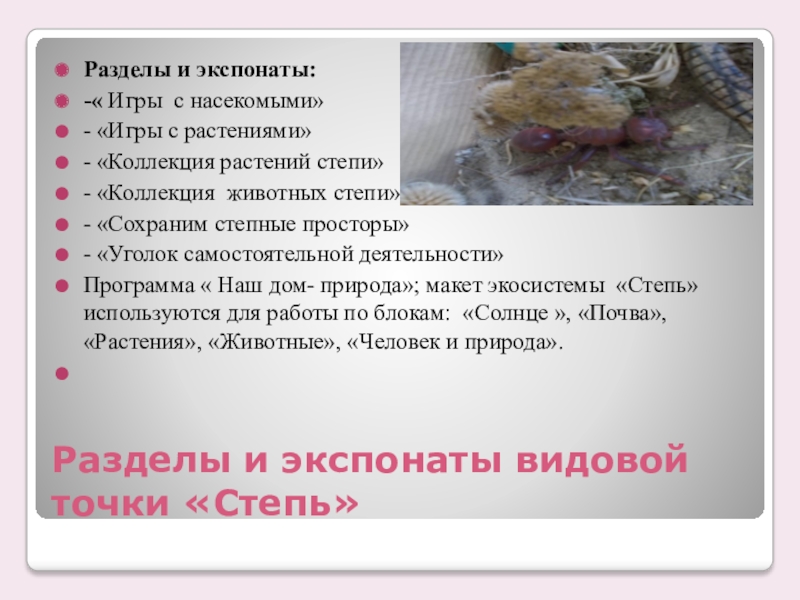 Слайд 12Экспонаты видовой точки «Степь»