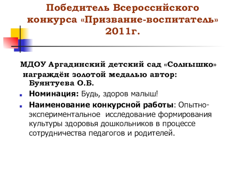 МДОУ Аргадинский детский сад «Солнышко»