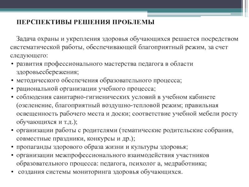 защитить учащихся от неблагоприятных воздействий учебного процесса на здоровье детей;