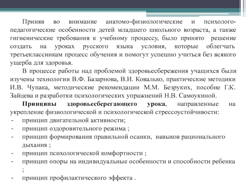 Слайд 8Приняв во внимание анатомо-физиологические и психолого-педагогические особенности детей младшего школьного возраста,