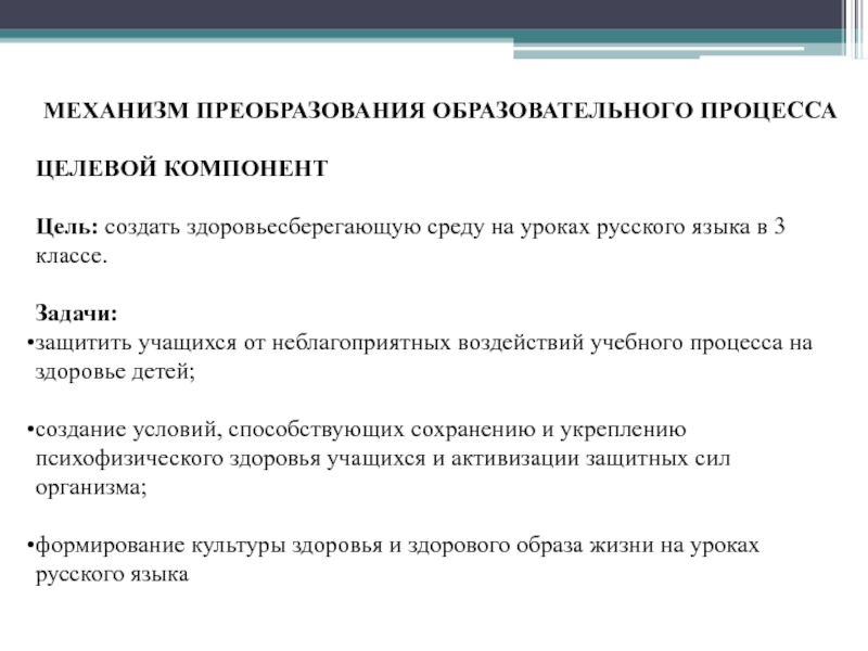 Слайд 6МЕХАНИЗМ ПРЕОБРАЗОВАНИЯ ОБРАЗОВАТЕЛЬНОГО ПРОЦЕССА