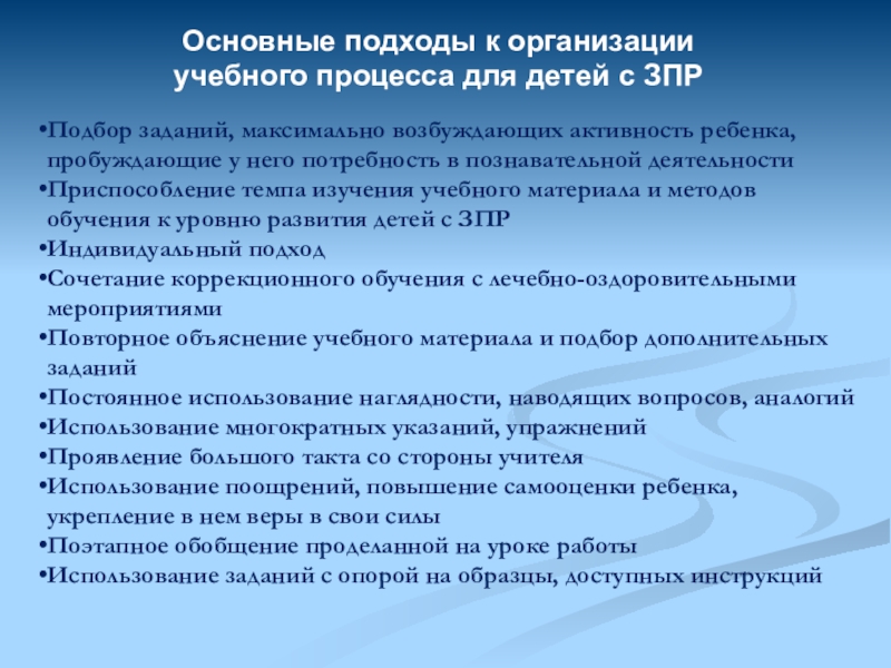 Основные подходы к организации учебного процесса для детей с ЗПР