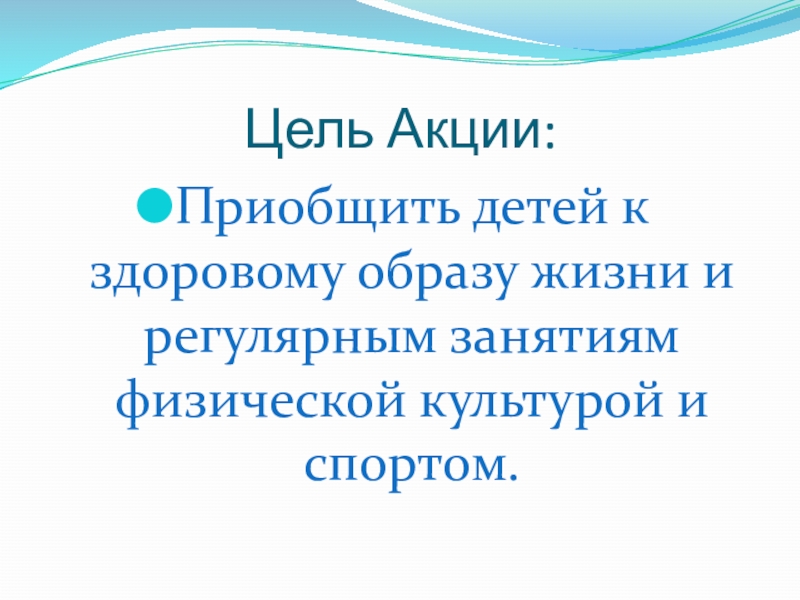 Цель Акции:Приобщить детей к здоровому образу жизни и регулярным занятиям физической культурой и спортом.
