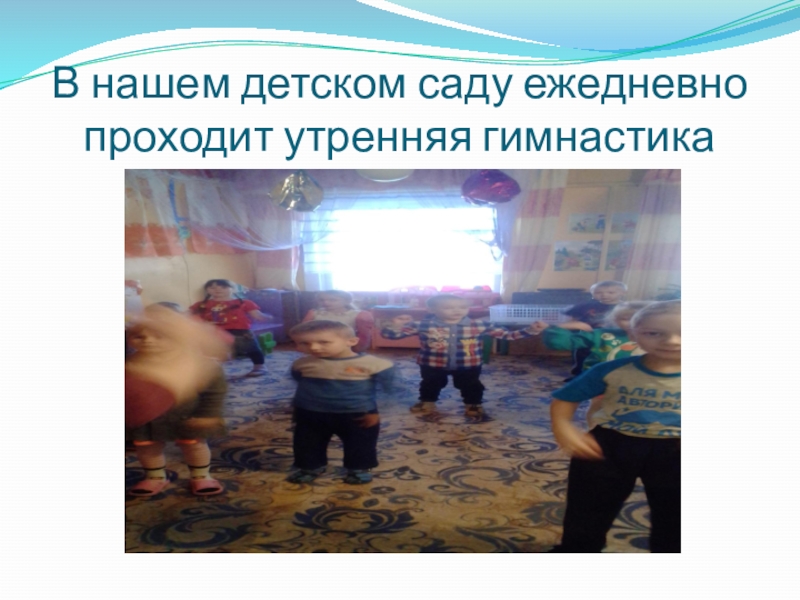 Слайд 7В нашем детском саду ежедневно проходит утренняя гимнастика
