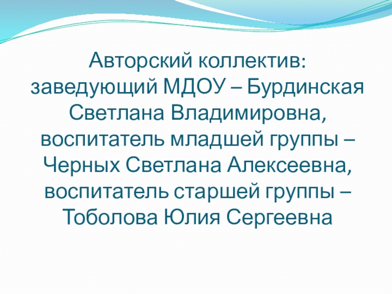 Слайд 5Авторский коллектив: заведующий МДОУ – Бурдинская Светлана Владимировна, воспитатель младшей группы