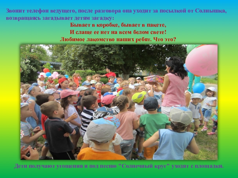 Дети получают угощения и под песню "Солнечный круг" уходят с площадки.