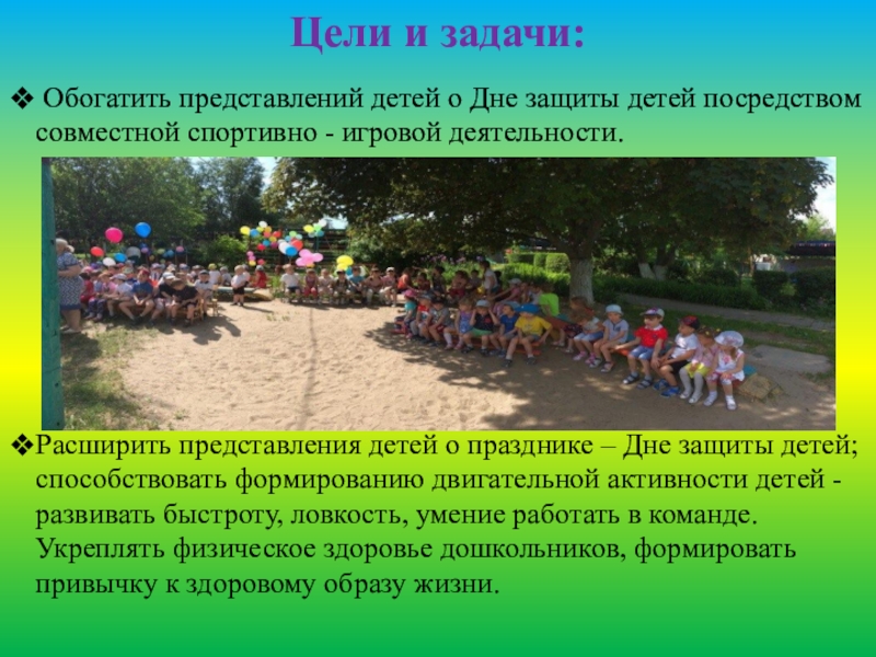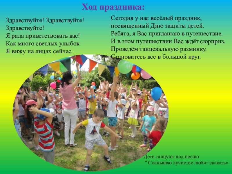 Сегодня у нас весёлый праздник, посвященный Дню защиты детей.