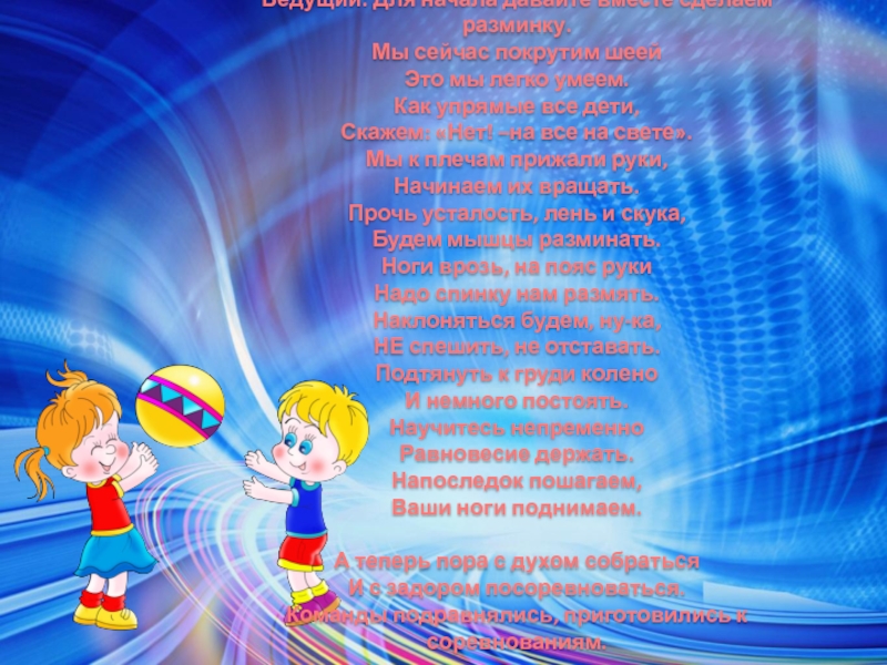 Слайд 5Ведущий: Для начала давайте вместе сделаем разминку.
