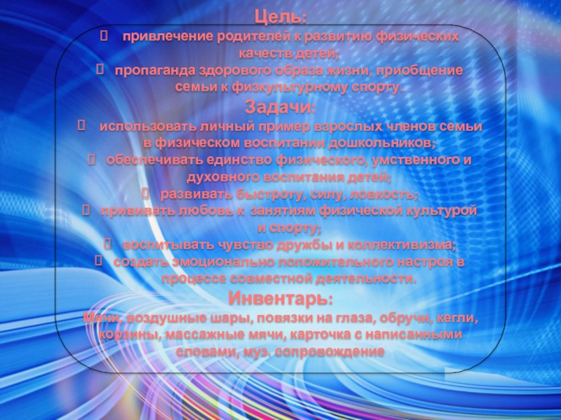привлечение родителей к развитию физических качеств детей;