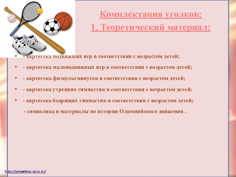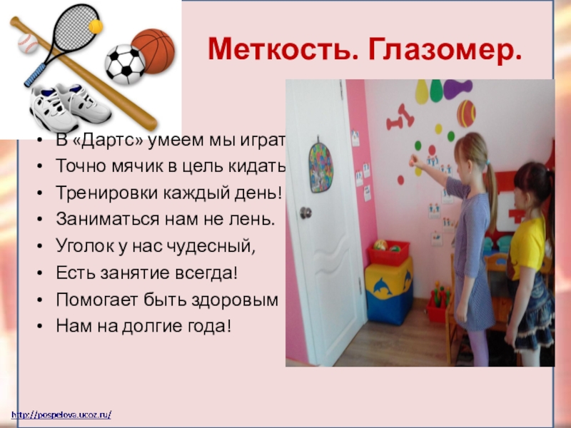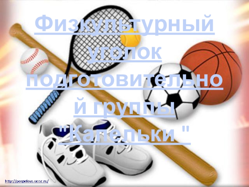 Слайд 1Физкультурный уголок подготовительной группы "Капельки "