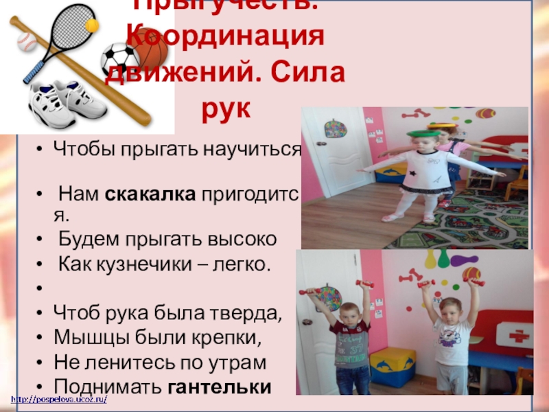 Слайд 15Прыгучесть. Координация движений. Сила рук