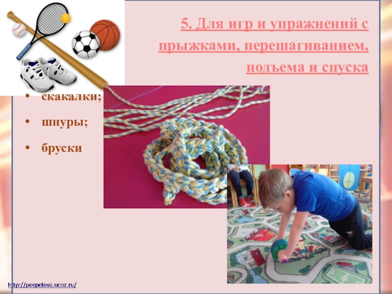 Слайд 95. Для игр и упражнений с прыжками, перешагиванием,