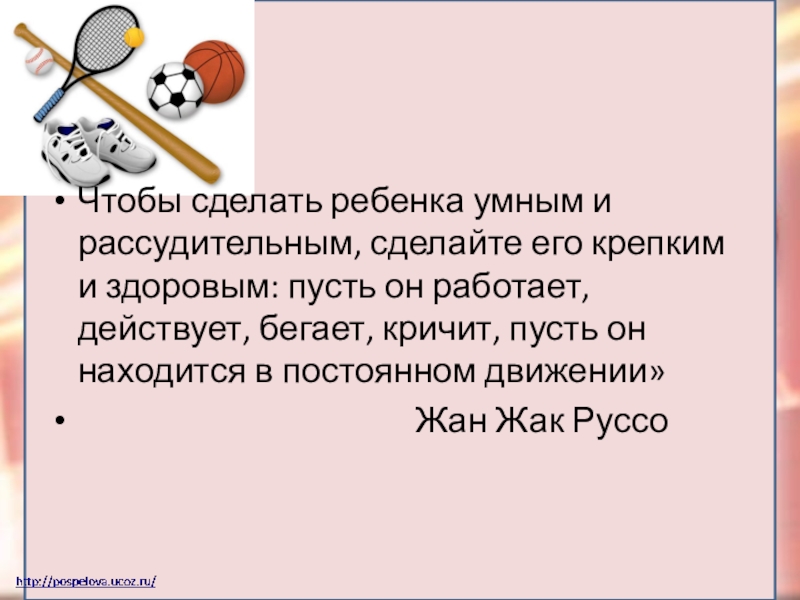 Слайд 2Чтобы сделать ребенка умным и рассудительным, сделайте его крепким и здоровым: