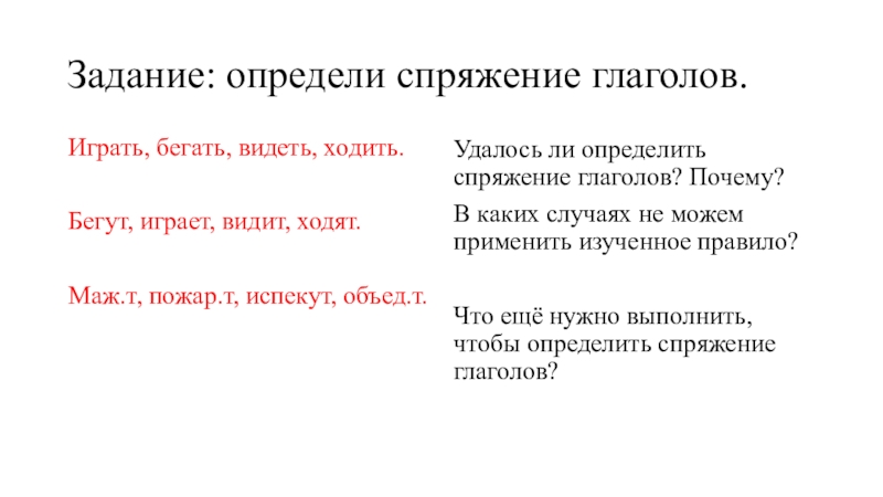 Что ещё нужно выполнить, чтобы определить спряжение глаголов?
