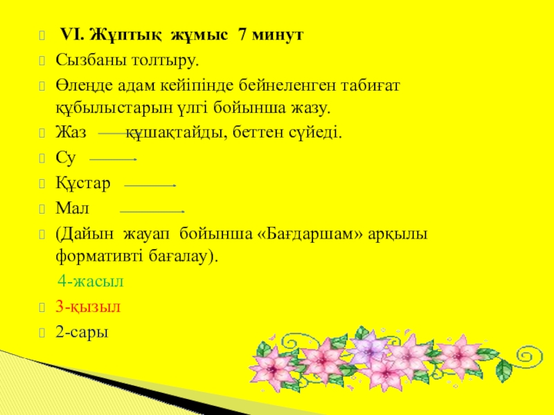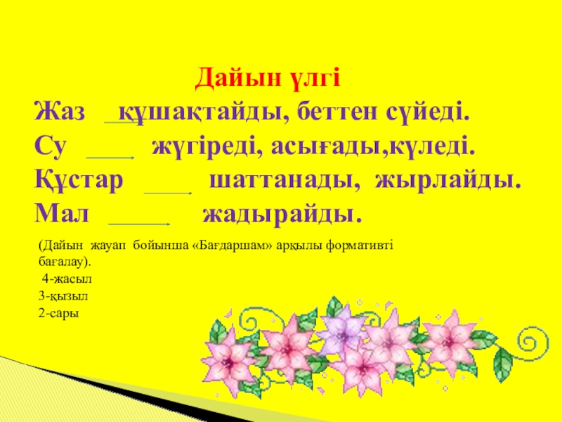 (Дайын жауап бойынша «Бағдаршам» арқылы формативті бағалау).
