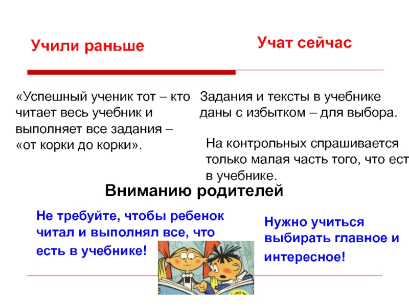 «Успешный ученик тот – кто читает весь учебник и выполняет все задания – «от корки до корки».
