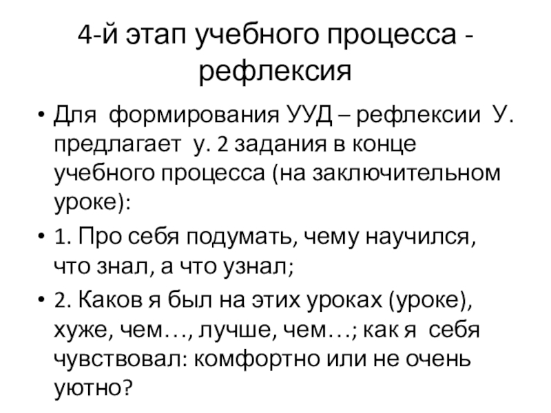 предлагает у. 2 задания в конце учебного процесса (на заключительном уроке):