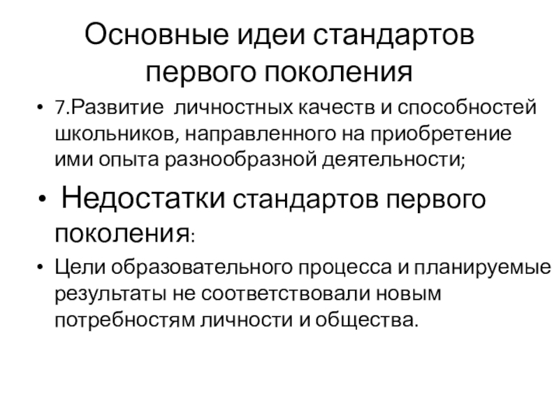 Цели образовательного процесса и планируемые результаты не соответствовали новым потребностям личности и общества.