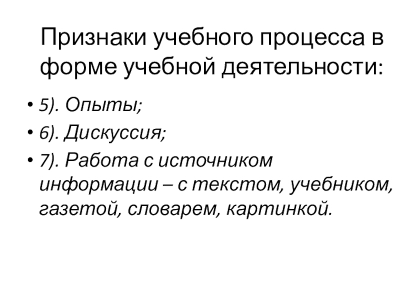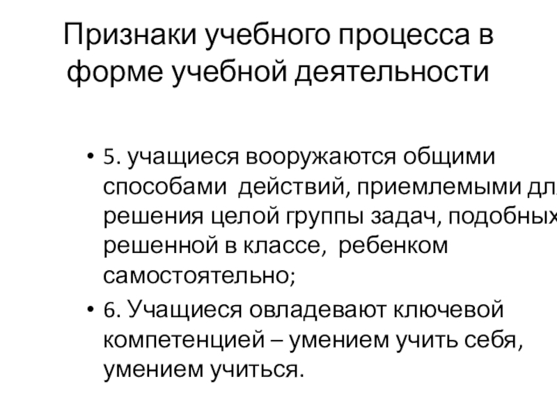 Слайд 12Признаки учебного процесса в форме учебной деятельности: