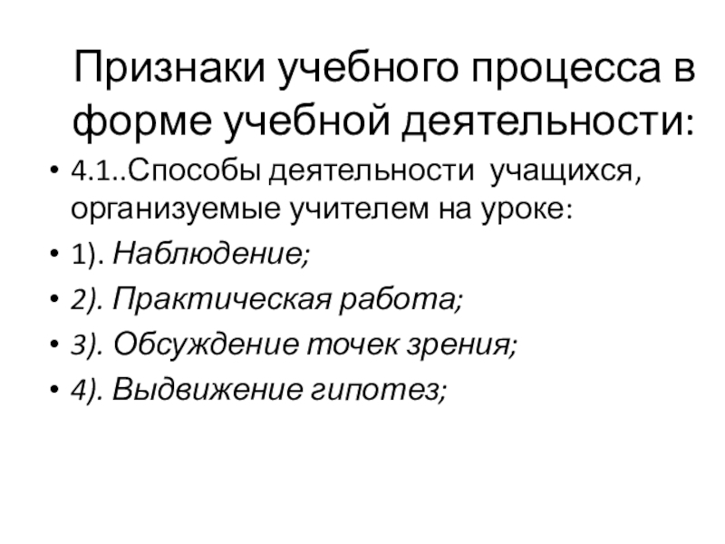Слайд 14Признаки учебного процесса в форме учебной деятельности: